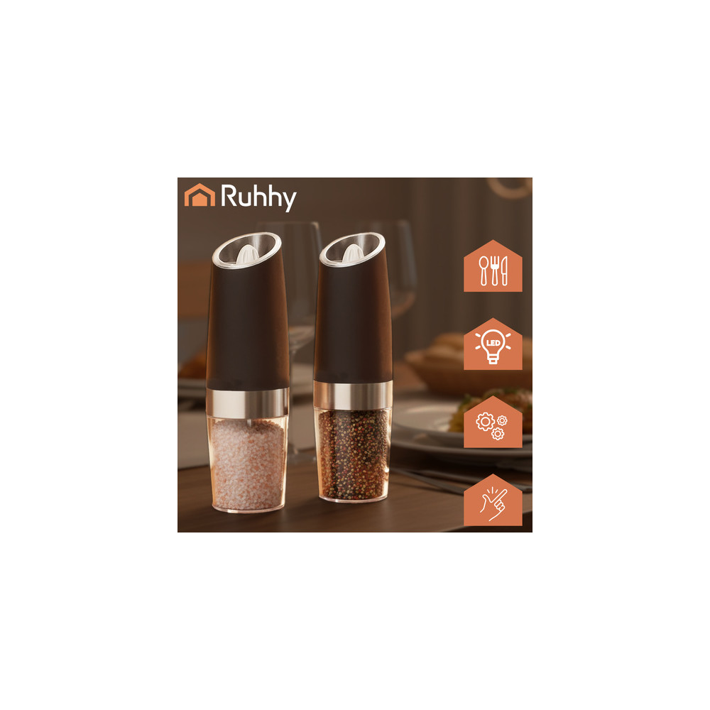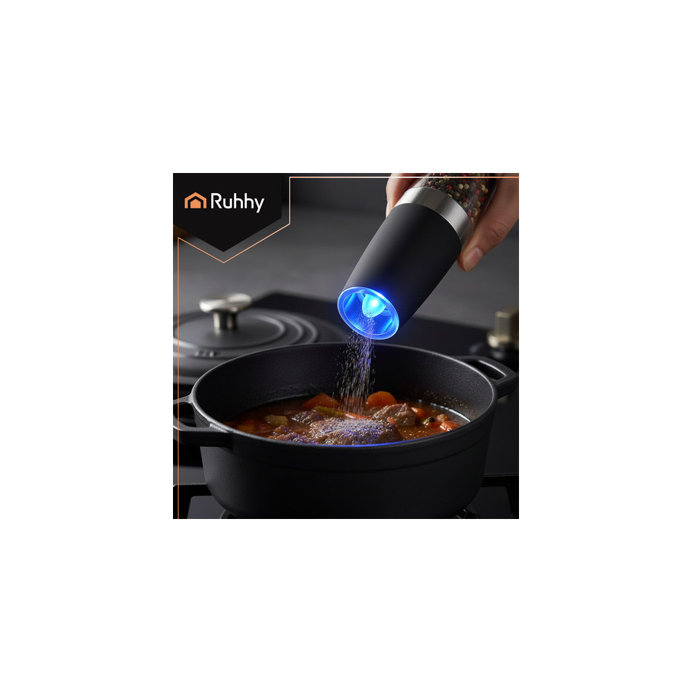 Elektrický gravitační mlýnek umožňuje nejrychlejší mletí zrnek pepře a dalšího koření. Pro aktivaci mlecího mechanismu stačí mlýnek naklonit. Umožňuje plynule nastavit tloušťku mletí na jemné nebo hrubé v závislosti na vašich potřebách. Kromě zrnek pepře a krystalků soli lze mlýnky naplnit bylinkami (i sušenými), aby byly vaše pokrmy ještě aromatičtější.