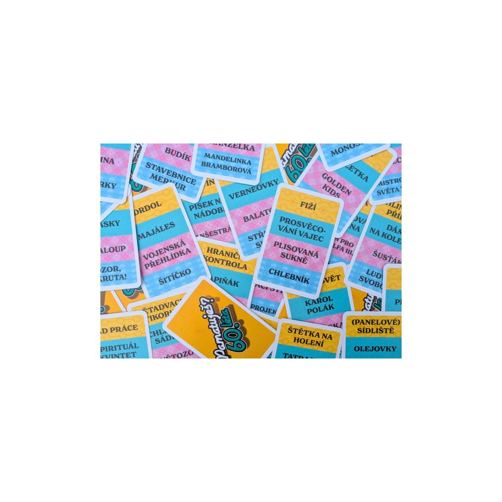 Vtipná retro párty hra zabaví všechny nad 60 let. Vraťte se s kamarády nebo rodinou do doby, kdy bylo všechno hezčí, jednodušší, voňavější a barevnější. Připomeňte si a napovídejte věci, které nás v 60. letech obklopovaly. Zvládnete je popsat celými větami, jedním slovem nebo pantomimou? Malou krabičku můžete mít pořád u sebe, a tak můžete hrát na večírcích, párty, dovolených nebo klidně na třídních srazech.