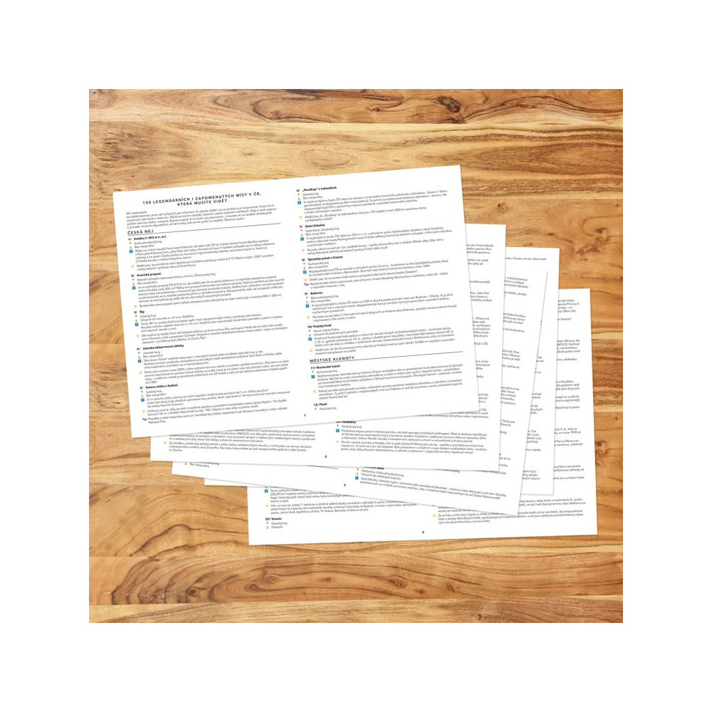 Jako bonus jsme vám k plakátu přibalili také stručného průvodce všemi 100 místy, ve kterém najdete informace o lokalitě, vstupném, zajímavostech a také tipech, s čím daný výlet spojit.