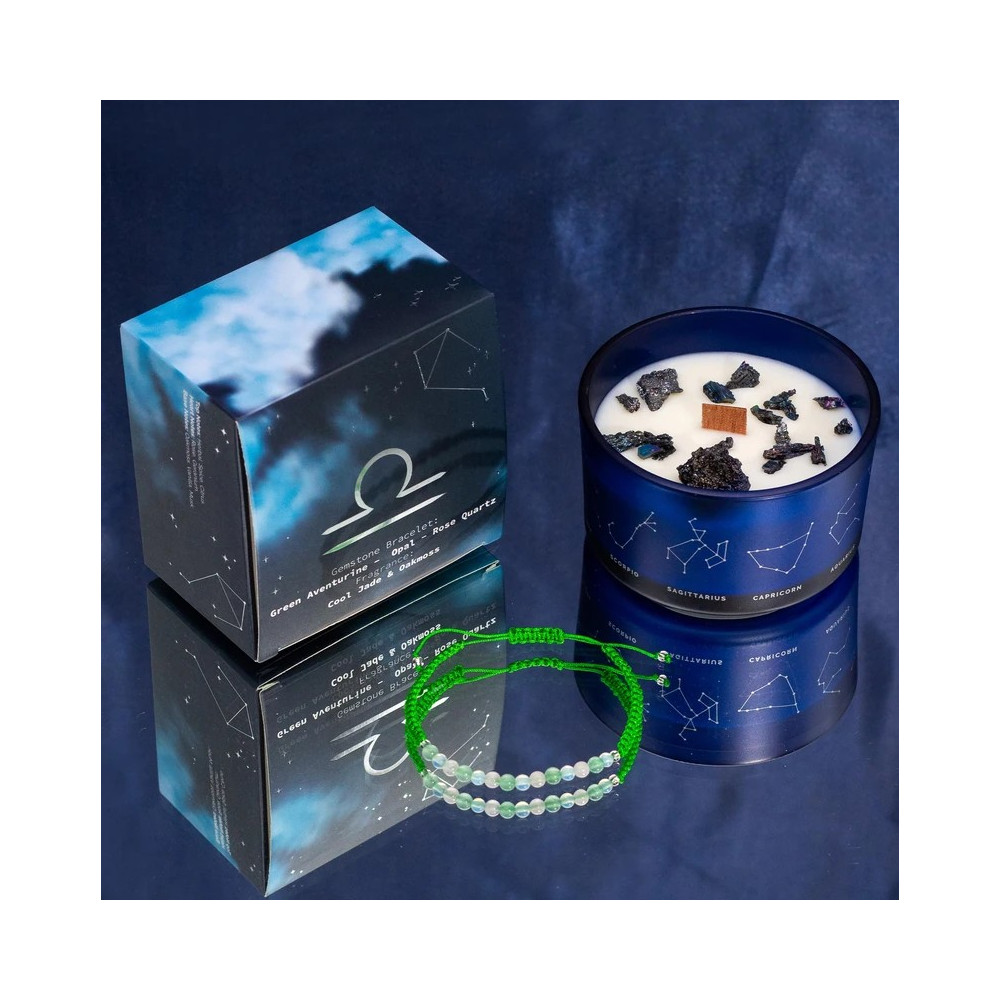 Sada obsahuje drahokamový náramek vyrobený ze zeleného avanturínu, opálu a růžového křemene vybraného tak, aby rezonoval s diplomatickým duchem Vah, umocňoval jejich kouzlo a podporoval rovnováhu v jejich vztazích. Zelený avanturín pomáhá najít jasnost a rovnováhu v jejich rozhodování. Opál zvyšuje přirozený šarm a kreativitu Vah a Rose Quartz jim pomáhá udržovat harmonii ve vztazích.