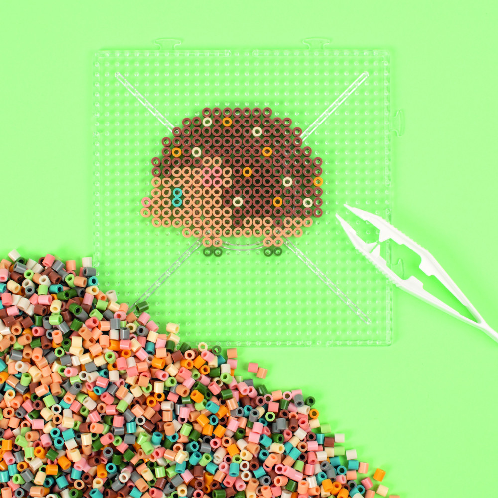 Zažehlovací korálky v praktickém plastovém kufříku. Sada obsahuje 12 000 ks zažehlovacích korálků, destičku, barevné předlohy, zažehlovací papír a pinzetu. K sestavení obrázků z korálků používejte podložky pro korálky, na které buď podle šablon nebo podle vlastní fantazie vytváříte nejrůznější motivy. Poté na vyskládaný obrázek položte běžný pečící papír a zažehlete žehličkou ohřátou na nejvyšší stupeň. Nechte korálky vychladnout, obrázek sejměte z podložky a máte hotovo!