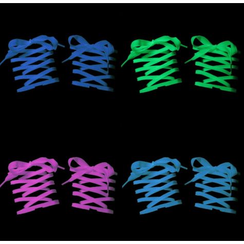 Látkové tkaničky ve fluorescenční barvě. Stačí na nějakou dobu vystavit přímému světlu nebo slunci, tkaničky se "nabijí" a budou fosforově zářit ještě dlouho po setmění. Výrazně svítí i při vystavení UV záření (například v klubu). Navlékněte tyto tkaničky do tenisek a Vaše taneční kroky budou na parketu nepřehlédnutelné!